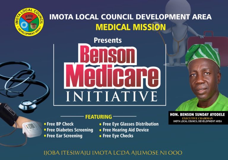 The Imota Local Council Development Area, under the leadership of Hon. Benson Sunday Ayodele, in continued commitment to promoting quality healthcare and enhancing the welfare of its workforce, is set to organize a monthly Free Medical Outreach programme for all staff members.