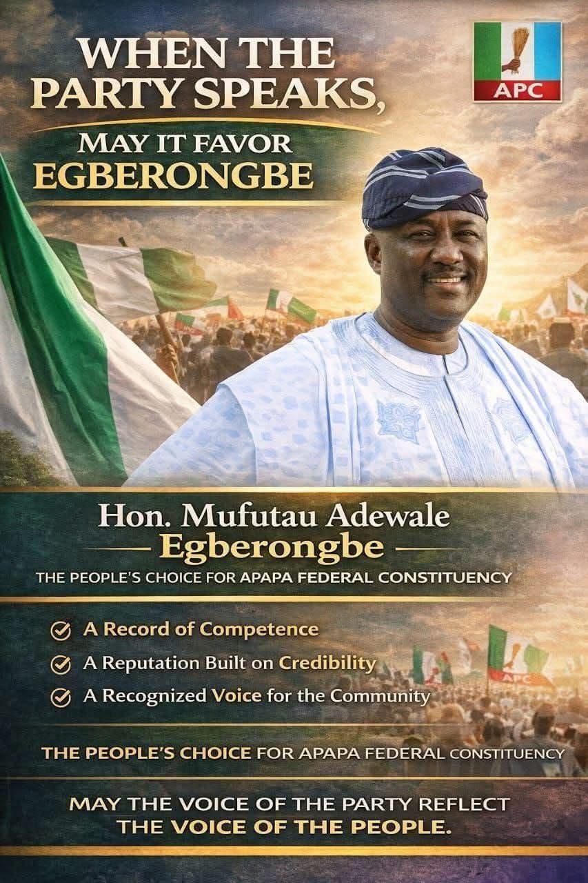 A former member of the Lagos State House of Assembly and one-time lawmaker in the House of Representatives, Mufutau Adewale Egberongbe is seeking a return to the National Assembly, anchoring his campaign on a record of issue-driven legislative interventions in Apapa Federal Constituency.