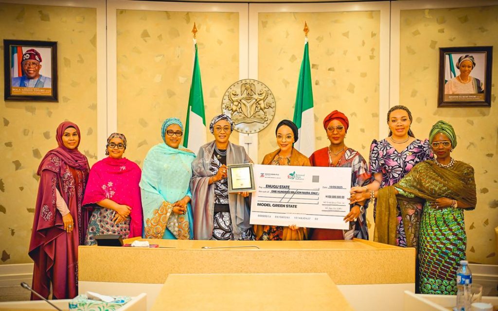 At the event, the First Lady presented a N100 million cheque to Enugu State, recognised by RHI as the “Model Green State”. “They earned it.